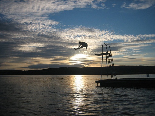 Wanneer de tenten eenmaal opgesteld staan (bij sommige duurt dit al wat langer omdat de tenten voor het eerst gebruikt worden) nemen we een duik in de prachtige fjord. Van verkwikking gesproken!