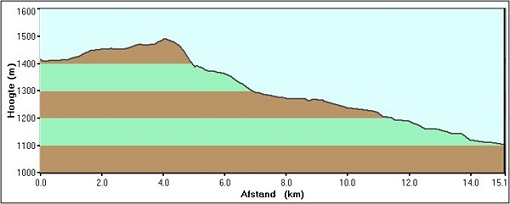 Hoogteverschil omlaag: 600 meters, omhoog:  600 meters