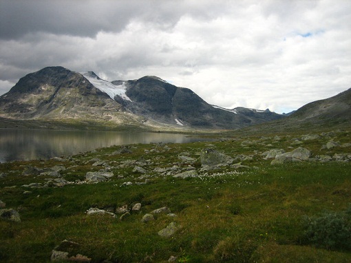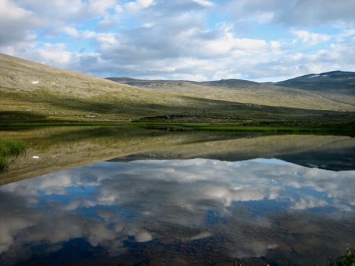 We rijden via route 55 door tot in Krossbu, waar we onze tenten opstellen voor een laatste nacht in het Jotunheimen NP. Het is er ijskoud (op 1434m hoogte), maar de nabijheid van de gletsjers en de prachtige sterrenhemel maken dat ruimschoots goed.