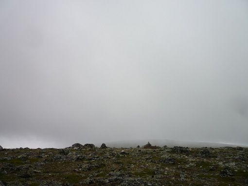 Wat later in de reis horen we dat een vriend dezelfde beklimming de dag nadien had aangedurfd. Hij had prachtig weer en een subliem vista over Jotunheimen. Can’t have ‘em all…