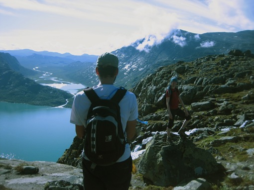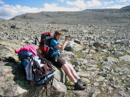 Het hoofddoel van onze reis door Noorwegen is deze zesdaagse trektocht door het nationaal park Jotunheimen. Gedurende zes dagen trekken we met zware rugzakken door afgelegen gebieden, voorzien van kampeerspullen en gedroogd voedsel. Dit is onze eerste trektocht van meer dan twee dagen, goed voor 100 km wandelplezier.