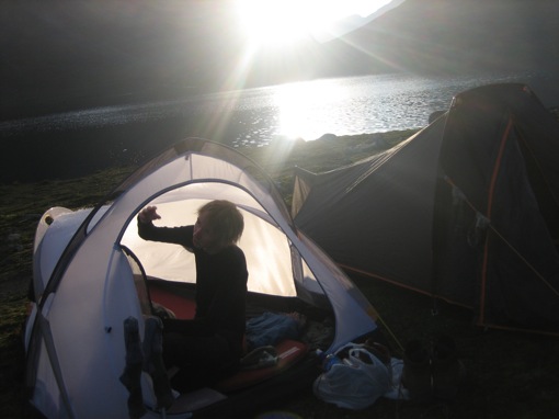 Overnachting: wildkamperen aan een meertje voorbij de hut van Glitterheim
