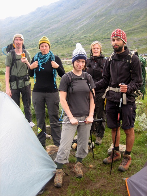 Na de zware tocht van gisteren, besluiten we om vroeg op te staan en niet te lang te treuzelen alvorens verder te trekken. Gelukkig schijnt de zon en kunnen we na een stevig ontbijt de tenten vlot afbreken en vertrekken. We laten Filip met zijn kniekwetsuur achter. Hij zal proberen al liftend weg te geraken en we spreken af om elkaar in Spiterstulen of anders op het einde van de tocht terug te zien.