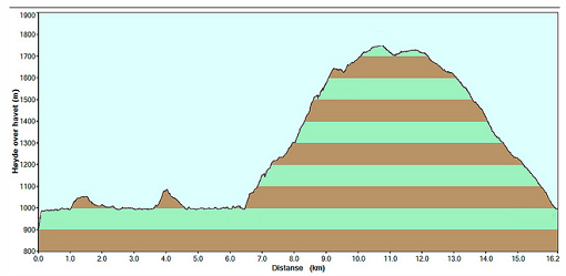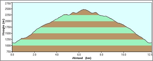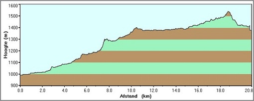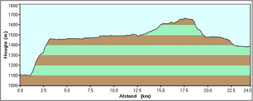Hoogteverschil omlaag: 1525 meters, omhoog: 1525 meters