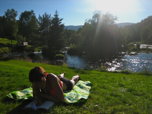 Wanneer we terug bij de auto’s komen worden we omsingeld door een kudde grazende koeien. Geen makkie om weg te rijden! Via Ardal rijden we verder tot we in Vassenden een leuke campingplek vinden langs de rivier bij camping Jolvassbu.