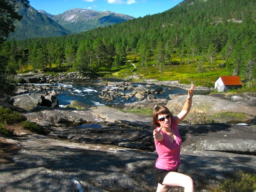 We laten de camping aan de rivier in Vassenden voor wat het is en reizen verder, eerst langs de E39 en vervolgens langs de wondermooie route 13. Aan de “Likholefossen” waterval (wat een naam!) stoppen we even om de benen te strekken.