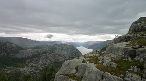 We blijven even op de Preikestolen en genieten (ondanks het slechte weer) van het bijzondere uitzicht op het Lysefjord. Het kader is echt fenomenaal en we nemen even de tijd om een aantal coole foto’s te maken.