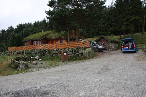 Na de afdaling terug naar het parkeerterrein, zijn we blij dat we in de auto’s kunnen schuilen voor het slechte weer. We verlaten het Lysefjord en rijden door de gietende regen verder naar het Zuiden, tot we een afgelegen hut vinden om te overnachten.