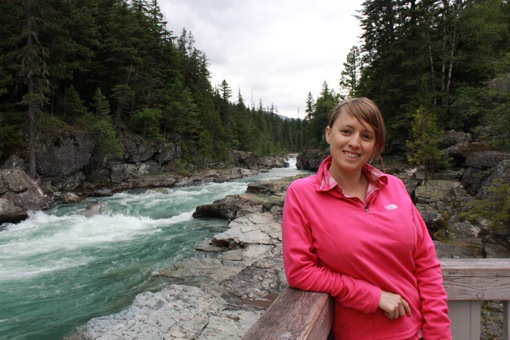 Na de korte maar natte klim naar een waterval keren we terug naar Many Glacier en warmen ons op met een goeie hete koffie aan de open haard in de imposante inkomhal van het Many Glacier Hotel. Gezelligheid troef!