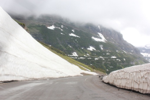 Vandaag staan we vroeg op want er staat veel op het programma. Net op tijd voor de regen plooien we de tent op en vertrekken we voor de Going To The Sun Road. Helaas zit het weer niet mee en doen we de hele route in de regen en kou. Uitstappen proberen we te beperken want de wind snijdt en het is ijzig koud. We hadden hoge verwachtingen van deze naar het schijnt prachtige rit, maar hebben er helaas niet erg van kunnen genieten. De route zelf is nog maar één week geopend omwille van de sneeuw op het hoogste punt van de route, de Logan Pass.