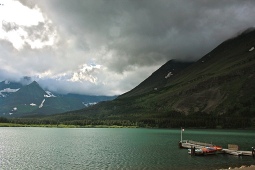 Om elven zetten we de tent op aan de Many Glacier Campground vlak aan de Swiftcurrent Inn. Onze plannen om de Iceberg Lake Trail te doen stellen we dan maar even uit tot de volgende dag. De regen gooit onze planning een beetje overhoop en we besluiten om het bezoek van morgen aan Waterton Lakes NP dan maar te annuleren om toch maar de Iceberg Lake Trail te kunnen doen en een stukje van Glacier NP te kunnen zien.