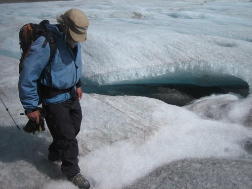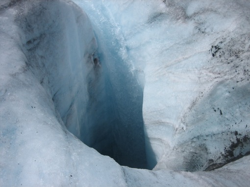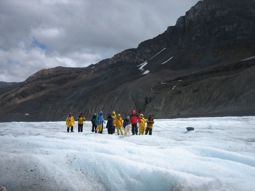De meeste toeristen nemen een bus tot aan de voet van de gletsjer en stappen dan over op de Snowcoach, een bus met enorme wielen die op de gletsjer rijdt. Wij kiezen voor de minder toeristische, meer ecologische en avontuurlijke tocht van vijf uur te voet over de gletsjer. De gletsjer verliest alsmaar lengte en het lijkt ons onverantwoord om dit proces nog wat te gaan versnellen door met een bus op de gletsjer te rijden. Bovendien zie je te voet veel meer, voel je je meer verbonden met de gletsjer en kom je op plaatsen waar de meesten niet komen.