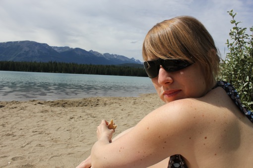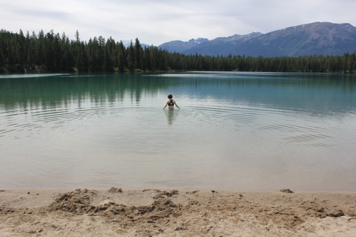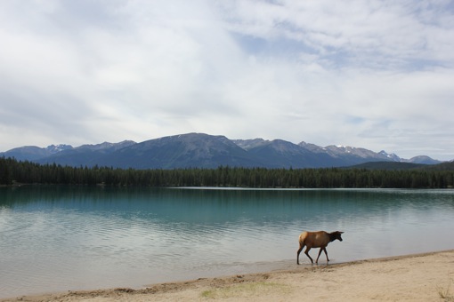 Na een heerlijke lange nacht en een stevig ontbijt checken we uit en gaan we op zoek naar een kampeerplekje in de buurt van Jasper. We blijven nog één nacht in Jasper NP en willen er vroeg bij zijn want de toffe, basic campings zijn hier snel vol. We vinden een plekje in de Snaring River Campground, stellen de tent op en vertrekken voor een erg rustig dagje in en rond Jasper.