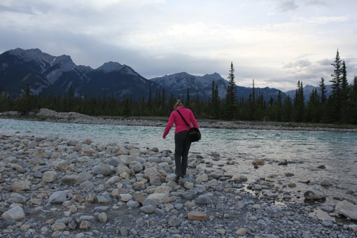 We wandelen even langs de oever van de Snaring River, vlak aan onze tent en genieten van de frisse berglucht.