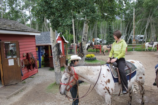 We besluiten Annette Lake te laten voor wat het is (het begint al wat drukker te worden) en rijden naar Patricia Lake en Pyramid Lake. Na een wandeling gaan we naar de Ranch op de heuvel om te gaan Horsebackriden. We vonden het paardrijden in Montana zo leuk dat we het hier nog eens willen over doen.