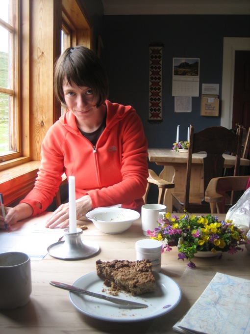 Het is al bijna 15u wanneer we eindelijk aan de hut van Hedlo toekomen. We doen de modderige schoenen en regenbroeken uit en begeven ons snel in de droge, warme hut. Wim en Jo besluiten dat ze vandaag niet meer verder willen stappen. We zijn nog maar halfweg de tocht en het is toch al redelijk laat. Met de baby doen ze het liever wat rustiger aan. en blijven ze liever in de (waanzinnig dure) hut overnachten. Na even twijfelen, besluiten Uli en ik dat we toch gaan proberen om tot in Hadlaskard te geraken. Geraken we er niet, dan kunnen we nog altijd de tent onderweg opzetten. We spreken met Wim en Jo af dat we elkaar ofwel daags nadien in Torehytten zullen tegenkomen, en anders op dag 4 in Hedlo. Vinden we elkaar echt niet terug, dan spreken we af op dag 5 aan de auto.