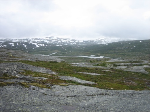 We rijden langs mooie uitzichten, maar door de aanhoudende regen is het moeilijk om iets te zien van het landschap. Via Fagerheim, Haugastol en Ustaoset komen we uiteindelijk in Geilo, waar we de komende dagen zouden blijven. Geilo is een stadje dat vooral gekend is als skigebied, maar dat in de zomer een uitstekend uitvalspunt is voor tochten in de Hardangervidda, de Hardangerjokulen of de Prestholtskarvet.