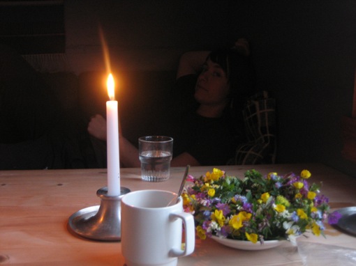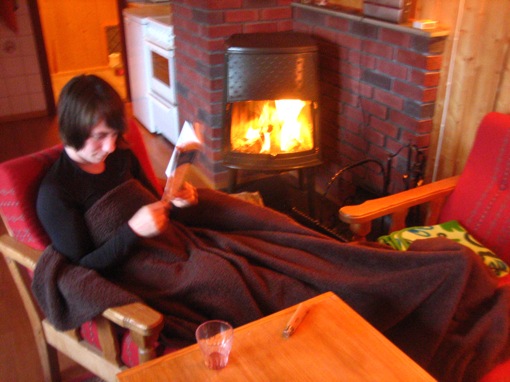 In de livingruimte vertellen we uitgebreid over onze tocht tot Hadlaskard terwijl we ons opwarmen met de warmte van de kachel. Ondertussen krabben we als een gek aan de vele muggenbeten die we als aandenken aan de tocht hebben overgehouden. Als ik alle beten optel kom ik uit op 53 beten! We smeren gretig de Euceta-gel op de beten en proberen er niet te veel aan te denken.