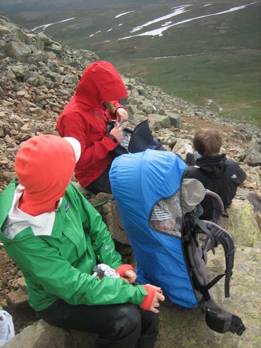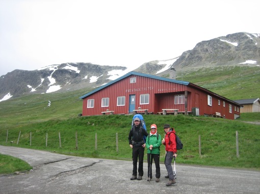Ondanks het slechte weer vertrekken we na een lekker ontbijt toch met de auto via een tolweg tot de Prestholtseter (1260m), de hut aan de voet van de Prestholtskarvet (1855m).
