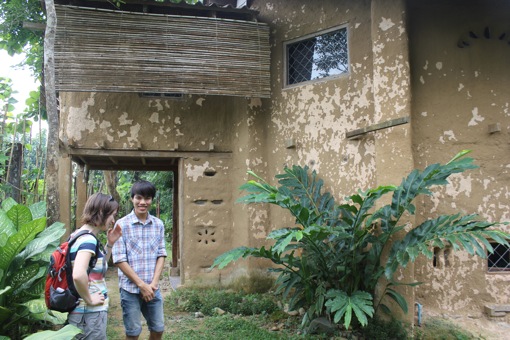 We komen bezweet toe aan de Organic Farm, te laat om nog te helpen met het geitenmelken (gebeurt al om 6u30!). We krijgen toch nog een rondleiding op de farm, door een schattige jongen die maar al te graag zijn Engels oefent. Tijdens de rondleiding krijgen we een mud house te zien, de mulberry tree plantage (al zijn de bomen nu afgekapt, hetgeen 1 maal per jaar gebeurt), geiten, biggen, composthopen,…Alle inkomsten van de boerderij worden gebruikt voor opleidingen, tewerkstelling, steun en vorming van de lokale dorpelingen. De Organic Farm werkt hoofdzakelijk met vrijwilligers.
