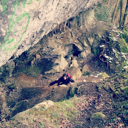 Wanneer we de tunnel uitkomen bevinden we ons aan het dorpje Yvoir. We steken het dorp door en volgen even de baan naar Ciney, om vervolgens een woonwijk in te slaan en verder te stijgen tot aan het natuurreservaat van Champalle. Bovenop de rotsen hebben we een prachtig uitzicht op de omgeving. Het pad leidt ons langs de rand van de rotsen, parallel met de Maas. De afgrond zorgt voor de nodige hoogtevrees, maar dat hoort erbij als je wil avontuurlijk wandelen in de Ardennen!