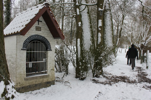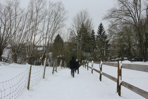 Na een fijne tocht over smalle, modderige en besneeuwde paadjes naderen we terug de kern van Asse. We zijn welgeteld één andere wandelaar tegen gekomen. Waarschijnlijk zitten de meeste mensen thuis bij de open haard…maar wij halen liever een frisse neus en genieten van de laatste (?) sneeuw!