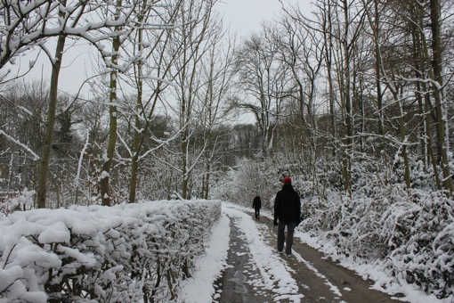 Na een heerlijk zondags ontbijt met Nil, besluiten we à l’improviste om te gaan wandelen in de verse sneeuw. Vorige week zijn we nog gaan wandelen en dachten we dat het de laatste sneeuw zou zijn van het jaar, maar niet dus! We kiezen voor de Kruisborrewandeling in Asse en vertrekken met warme kleren, muts en handschoenen naar het Boekfos park. Het park ligt er mooi bij, zo volledig onder-gesneeuwd. Ideaal om een sneeuw-engel te maken!