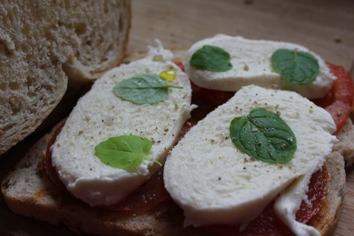 De wandeling sluiten we af met een heerlijke veggie-croque tomaat-mozzarella. Mjam!
