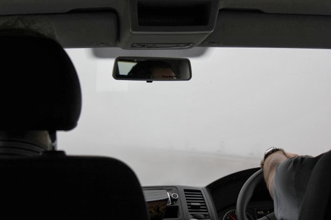 We willen onze weg verder zetten naar God’s Window, maar het wordt er plots zo mistig dat we geen steek meer zien. Blijkbaar gebeurt dat op dit punt wel regelmatig. Dan maar uitstellen tot morgen.
