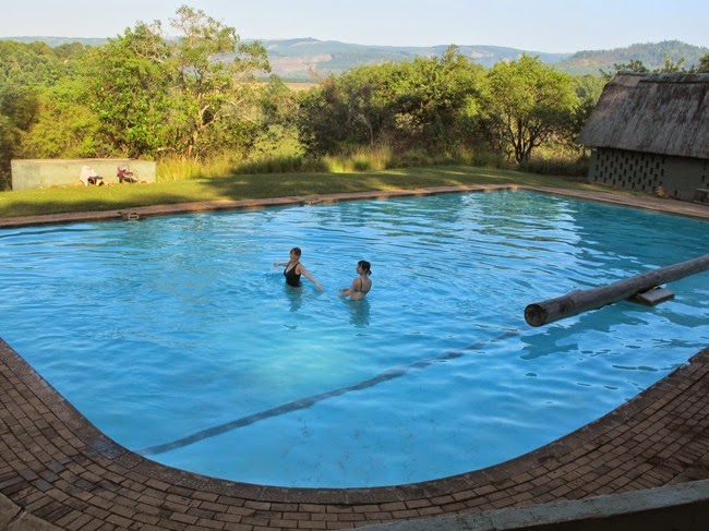 Wanneer we terug aan de hutten zijn, nemen we even een duik in het ijskoude zwembad en maken we ons gereed voor de rit naar St. Lucia.