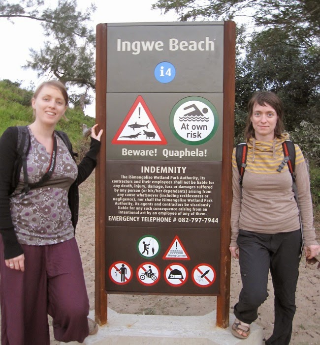 Na het boottochtje stoppen we nog even aan het strand om een glimp van de Indische Oceaan op te vangen. Lang blijven we niet op het strand want hier lopen nijlpaarden rond, een van de zoogdieren die het meeste menselijke slachtoffers maakt. De nijlpaarden gaan ’s avonds vaak door de straten van St. Lucia en wanneer ze mensen tegenkomen aanschouwen ze hen als gevaar. Ze willen dan zo snel mogelijk terug het water in geraken, maar als er een mens tussen hen en het water staat, lopen ze daar gewoon overheen.