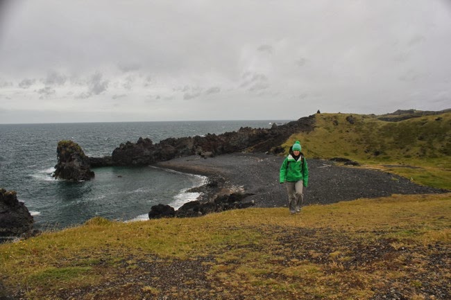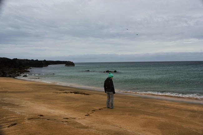 We rijden wat verder langs de peninsula en houden halt aan Malarrif, Londrangar en Skardsvik voor nog meer wandelingen langs stranden en kliffen. De meeste stranden zijn pikzwart, met uizondering van het strand van Skardsvik dat met z’n goudgeel zand en azuurblauw water er helemaal anders uitziet. We wanen ons even aan de Côte d’Azur, al zouden we daar in augustus zeker niet met jas en muts rondlopen!