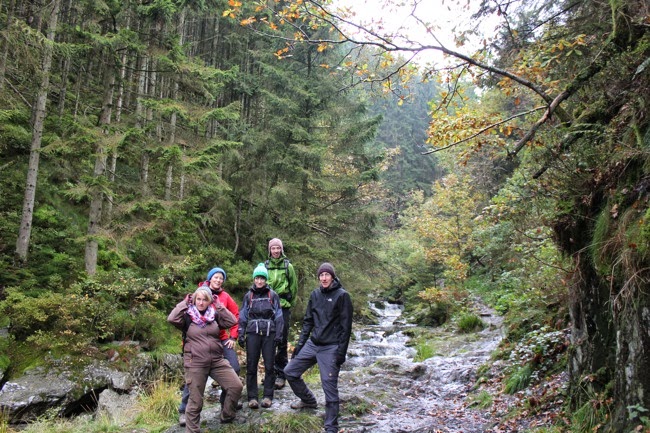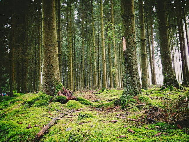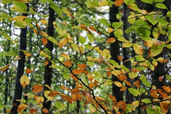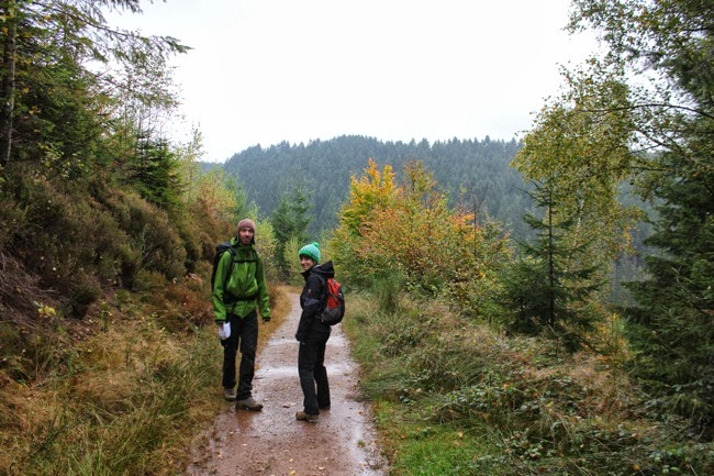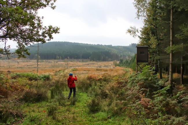 We parkeren de auto aan de Ferme Libert en volgen de rood witte markeringen naar het dal van de Trôs Marets. We wandelen door een bos en komen al gauw uit op een helling met een mooi uitzicht op de omgeving.