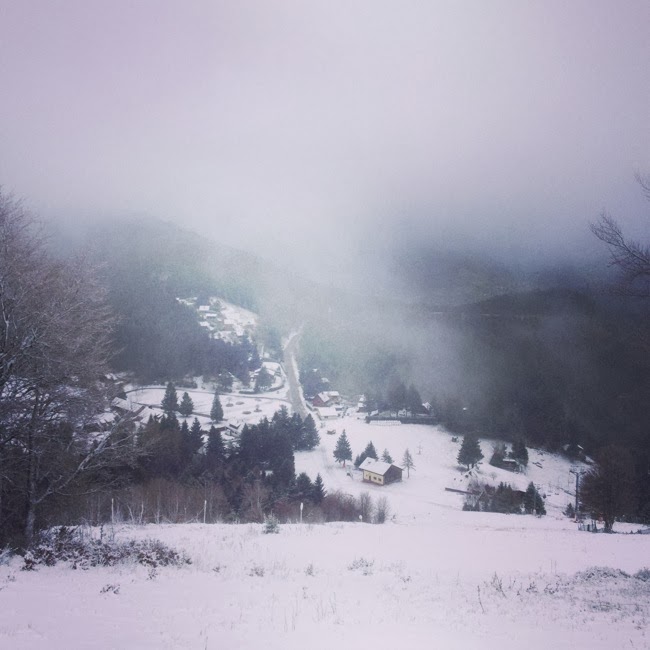 Het weer steekt tegen (regen en sneeuw) en Wim heeft last van zijn knie, dus nemen we de kortste weg naar de hut met zo min mogelijk afdalingen. We laten de Lac de Blanchemer voor wat het is en klimmen een aantal hoogtemeters tot op een besneeuwde weg. Iets verder steken we een aantal skipistes over. We komen hooguit drie skiërs tegen, maar daar zal het weer wel voor iets tussen zitten. Na nog wat kilometers door de diepsneeuw komen we uiteindelijk uit op de route des crêtes, die we volgen tot aan de Refuge du Sotré. Net op tijd want ondertussen zijn we helemaal doorweekt. De handschoenen zijn niet meer waterdicht. Zelfs mijn regenbroek en schoenen laten nu water door! We zijn maar een enkele uurtjes onderweg geweest maar toch doet het deugd om op te drogen in de warme refuge. Onze natte kleren stallen we uit in de droogkamer en we schuiven meteen aan tafel voor een heerlijke tartiflette met de lokale Münsterkaas.