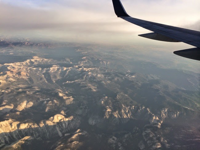 We vinden onze valiezen terug en gaan even een luchtje scheppen buiten alvorens we terug inchecken voor de volgende vlucht. Na een hapje en een drankje stappen we op de vlieger en gaan we weer voor 6 uur de lucht in. We zijn het reizen ondertussen beu en zijn vooral doodmoe. Tijdens de vlucht houden we ons bezig met films en het uitzicht boven de verschillende staten. Met het USA-kaartenboek erbij volg ik de vliegroute en de steden die we overvliegen. Alles is super uitgestrekt en de banen allemaal loodrecht op elkaar. Net voor de landing hebben we een prachtig uitzicht boven Yosemite NP, waarbij de Half Dome als een blok boven alles uittorent. Binnen enkele dagen staan we daar op, spannend!