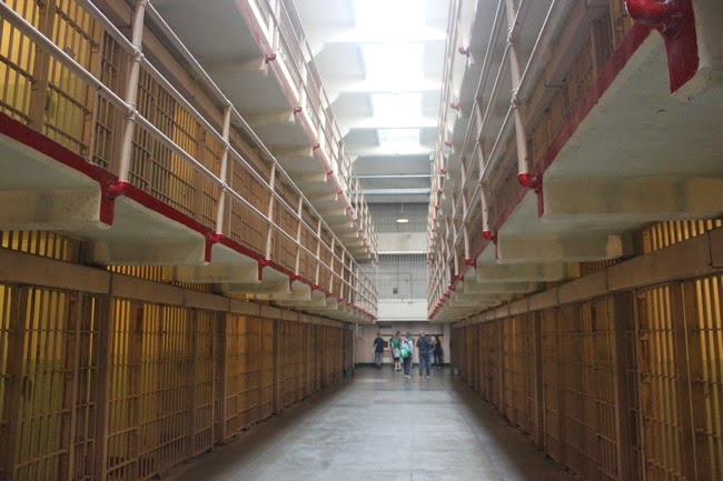 Een ruime boot brengt ons naar het kleine eiland van Alcatraz. Bij aankomst worden we meteen door de luidsprekers verwelkomd door een grappige ranger. We laten het volk achter ons en gaan meteen naar de ingang van het hoofdgebouw, waar we een audiogids krijgen en het bezoek beginnen. We aanschouwen de vele kleine cellen, leren over het leven in de gevangenis en komen alles te weten over de enkele ontsnappingspogingen en opstanden. Het bezoek is een echte aanrader!