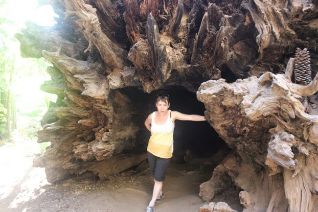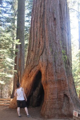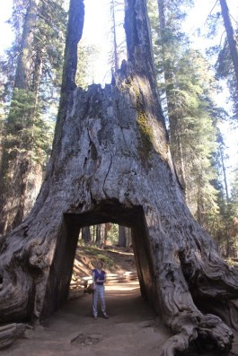 We rijden meteen enkele minuten verder naar het beginpunt van een korte wandeling tot Tuolumne Grove, waar we de eeuwenoude en massieve sequoia-bomen kunnen bewonderen. Sommige bomen zijn zo groot dat er een tunnel door gegraven is om er onderdoor te stappen. We zien al meteen een hert grazen en talrijke eekhoorns.