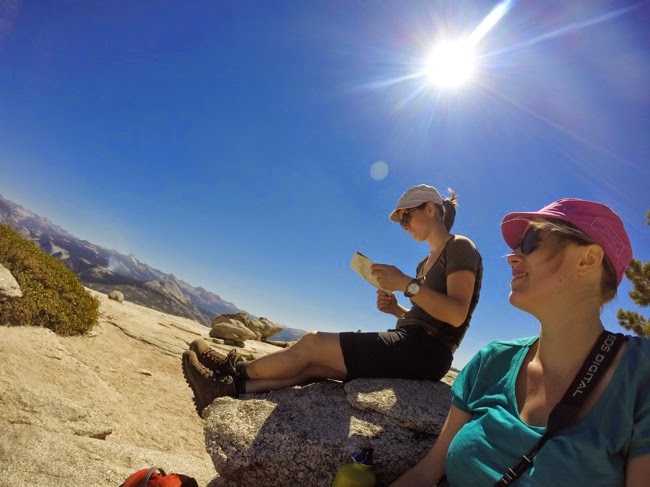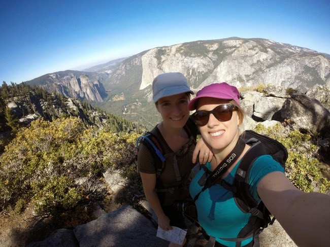 Van dit uitzichtspunt is het nog een korte afstand tot aan de top van de Sentinel Dome (2477m), maar de hitte en de hellingsgraad zorgen voor voldoende uitdaging. Op de top aanschouwen we een 360° panorama van Yosemite terwijl we restjes naanbrood eten met hummus en spicy Philadelphia met jalapenosmaak.