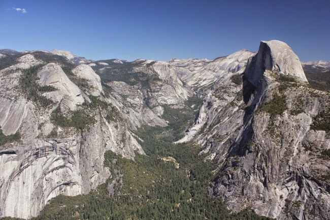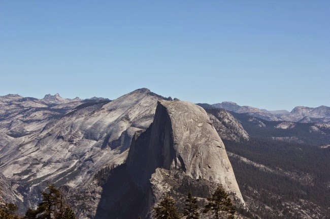 Aan de voet van Sentinel Dome, krijgen we plots het uitzicht langs de andere kant van de vallei te zien, met de Half Dome die boven alles uitsteekt. Hoe gaan we daar heelhuids op geraken, vragen we ons af.
