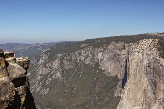 Het pad daalt en brengt ons tot Taft Point, een uitzichtspunt met een vertikale afgrond, vanwaar je een mooi uitzicht hebt op de vallei van Yosemite en El Capitan.
