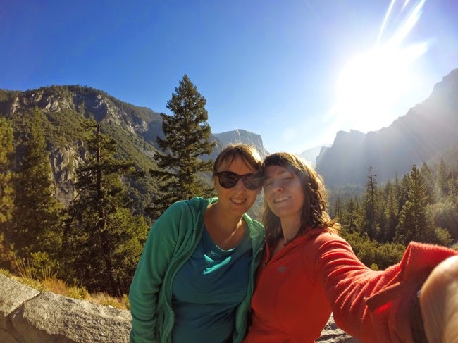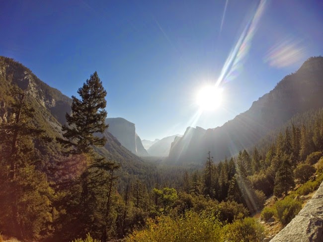 Omdat we geen tentzeil hebben opgezet, worden we al vroeg wakker van het licht en de geluiden van de vogels en eekhoorns. We ontbijten aan onze tent en laten de camping achter ons om het nationaal park te gaan verkennen. Onderweg maken we een eerste stop aan Tunnel View, waar we een prachtig uitzicht hebben over de vallei van Yosemite. We zijn de enigen op de kleine parking, maar daar zal het vroege uur wel voor iets tussen zitten.
