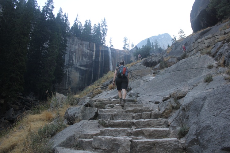 Plots verandert het pad terug in een stijgende zigzagweg met trapjes en dit blijft een hele tijd zo aanhouden. Een cerealreep doet gelukkig wonderen en zorgt voor de nodige energie om de top van de Nevada Falls te bereiken.