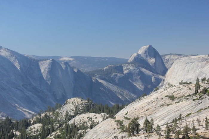Een erg korte wandeling brengt ons naar een plekje waar het uitzicht nog beter is. De steile Subdome is goed zichtbaar en we bedenken dat daar op het eigenste moment hikers aan het afzien zijn.