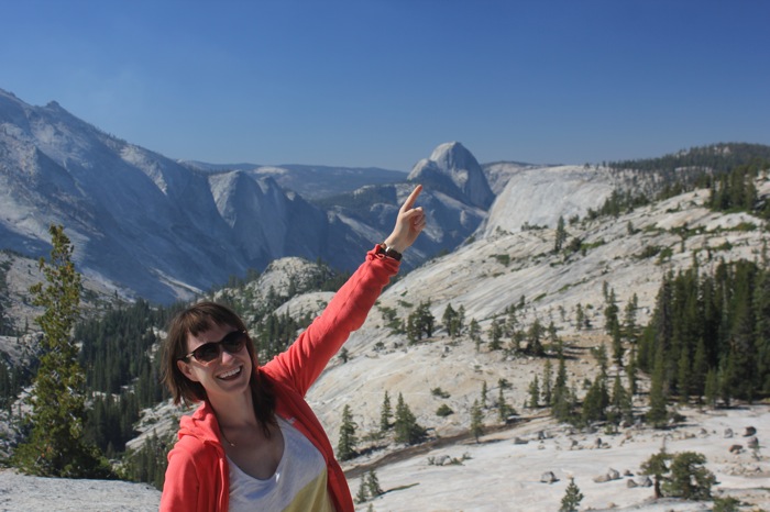 We rijden eventjes verder en stoppen dan aan Tenaya Lake, de ideale locatie om het gebrek aan een douche op de camping goed te maken. We trekken onze bikini’s aan en stappen in het meer. Het water is ijskoud maar dankzij het zonnetje is het toch aangenaam en geeft het een heerlijk en verfrissend gevoel. Wat een heerlijke plek om te zwemmen!