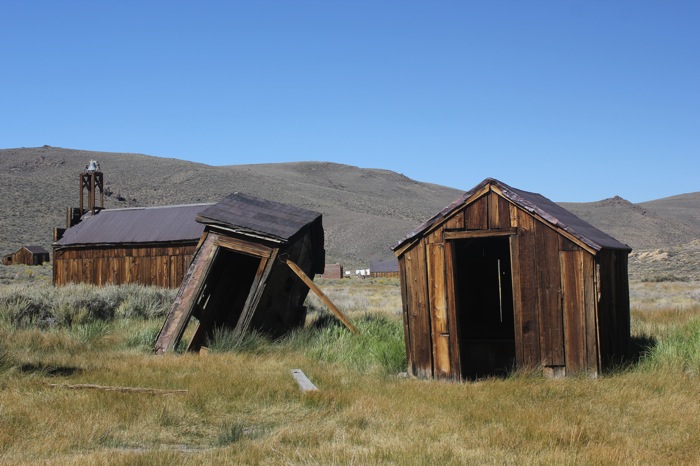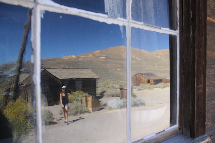 Vanuit Mono Lake rijden we via de Route 395 verder naar het noorden. Na enkele kilometers nemen we de afslag naar Bodie Road. Deze baan kronkelt zich door dorre heuvels en eindigt in een laatste stuk zonder asfalt. We proberen de vele putten en stenen te ontwijken en geraken zonder problemen tot de ingang van Bodie State Historic Park. Bodie is een ‘ghost town’, een verlaten stad die ooit 10.000 inwoners telde en bekend stond om z’n goudmijn en losbandige sfeer: moord en criminaliteit was er dagelijkse kost. Het is een bijzonder gure plek, waar de wind doorheen raast en de temperatuur altijd lager ligt dan in de rest van de staat.