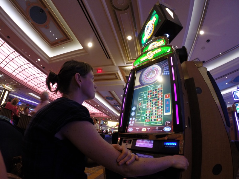 Maar de hoofdattractie blijft toch de casino’s zelf. We staan onszelf een budget van 20 dollar toe en verspelen dollar na dollar op de slot machines. We amuseren ons te pletter ook al verliezen we bijna elke keer en worden we er zeker niet rijker van. Het valt ons op dat bijna iedereen een glas alcohol in de ene hand heeft en een sigaret in de andere, hier mag dus nog binnen gerookt worden en daar kijken wij van op.