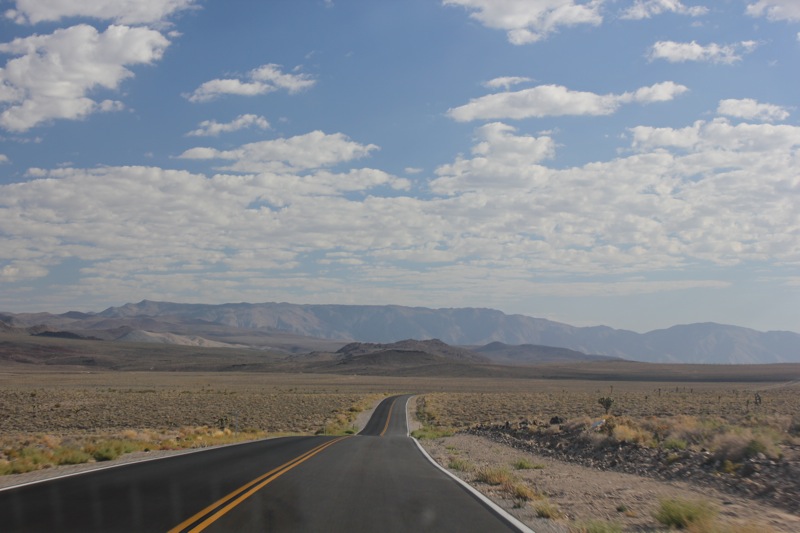 Na Zabriskie Point moeten we even door de heuvels rijden om uit het park te geraken. De airco moet even af en dus ervaren we nog een laatste maal de hete woestijnlucht van dit onherbergzaam gebied. Voor we het weten verlaten we het nationaal park en komen we terecht in een andere staat, namelijk Nevada. We rijden door eindeloze vlaktes en langs de stad Pahrump.