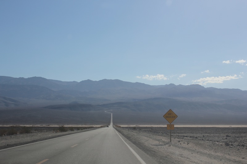 Lone Pine laten we voor wat het is en we rijden weg richting Death Valley. Het is nog maar 9 uur en toch is het al 20 graden. Wanneer we Death Valley National Park binnenrijden is de temperatuur al geleidelijk aan gestegen. De baan loopt mijlenver voor ons uit.