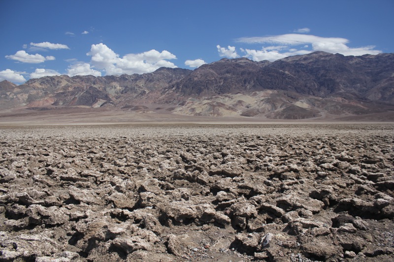 Na Badwater Basin stoppen we nog even aan de Devil’s Golf Course, een vlakte bedekt met vreemde zoutformaties.