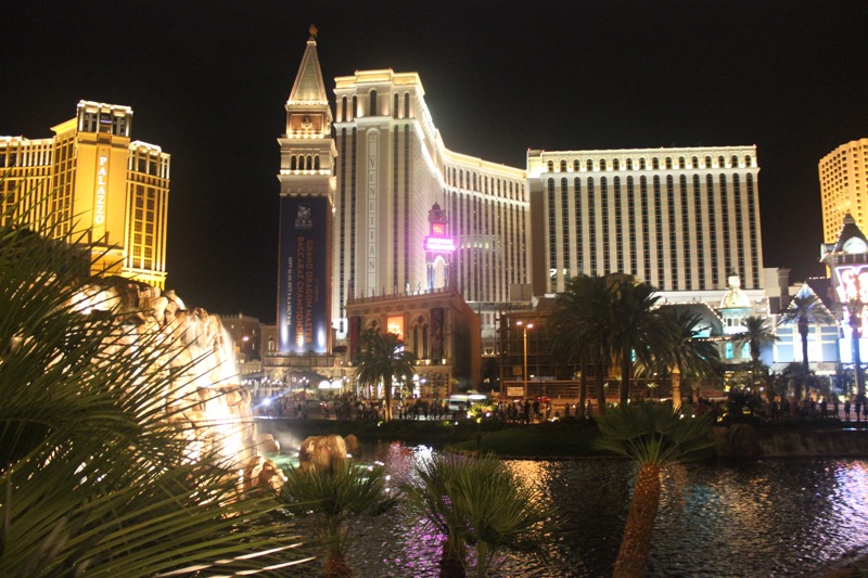 We krijgen een kamer toegewezen op het 46e verdiep en worden verrast met een supergrote suite met heerlijk bed, grote badkamer met bad en bed, een keukentje en een salon. Decadentie alom. We nemen een verkwikkende douche en checken even onze mails. Daarna trekken we meteen op verkenning in de stad. Via een doorgang wandelen we van ons hotel naar het casino van Bellagio. We worden meten overdonderd door de vele zintuiglijke impulsen rondom ons: slotmachines, Russische roulette, spelende mensen met cocktails in de hand, pas getrouwde koppels in trouwkledij en een hele suite die ze volgt, … We kijken onze ogen uit, gaan van casino naar casino en halen af en toe een frisse neus op straat langs “The Strip”.